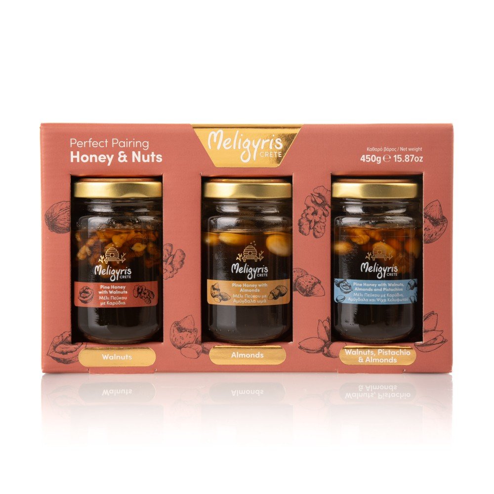 Cet ensemble miel et noix de 3×150 gr est la collation parfaite pour ceux qui recherchent une option saine et délicieuse.