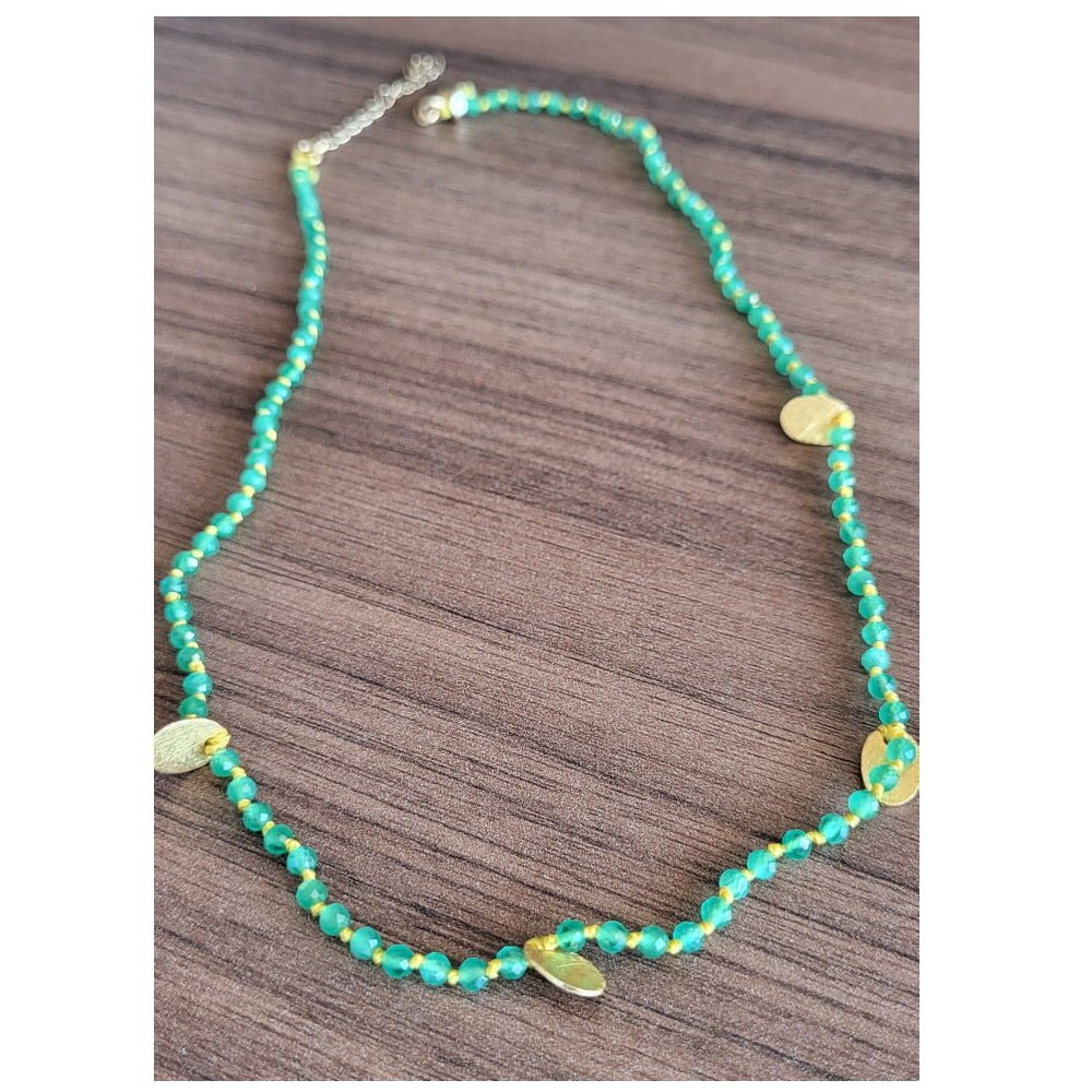 Collier en perles d’oeil de chat chrysoberyl monté sur fil métallique.